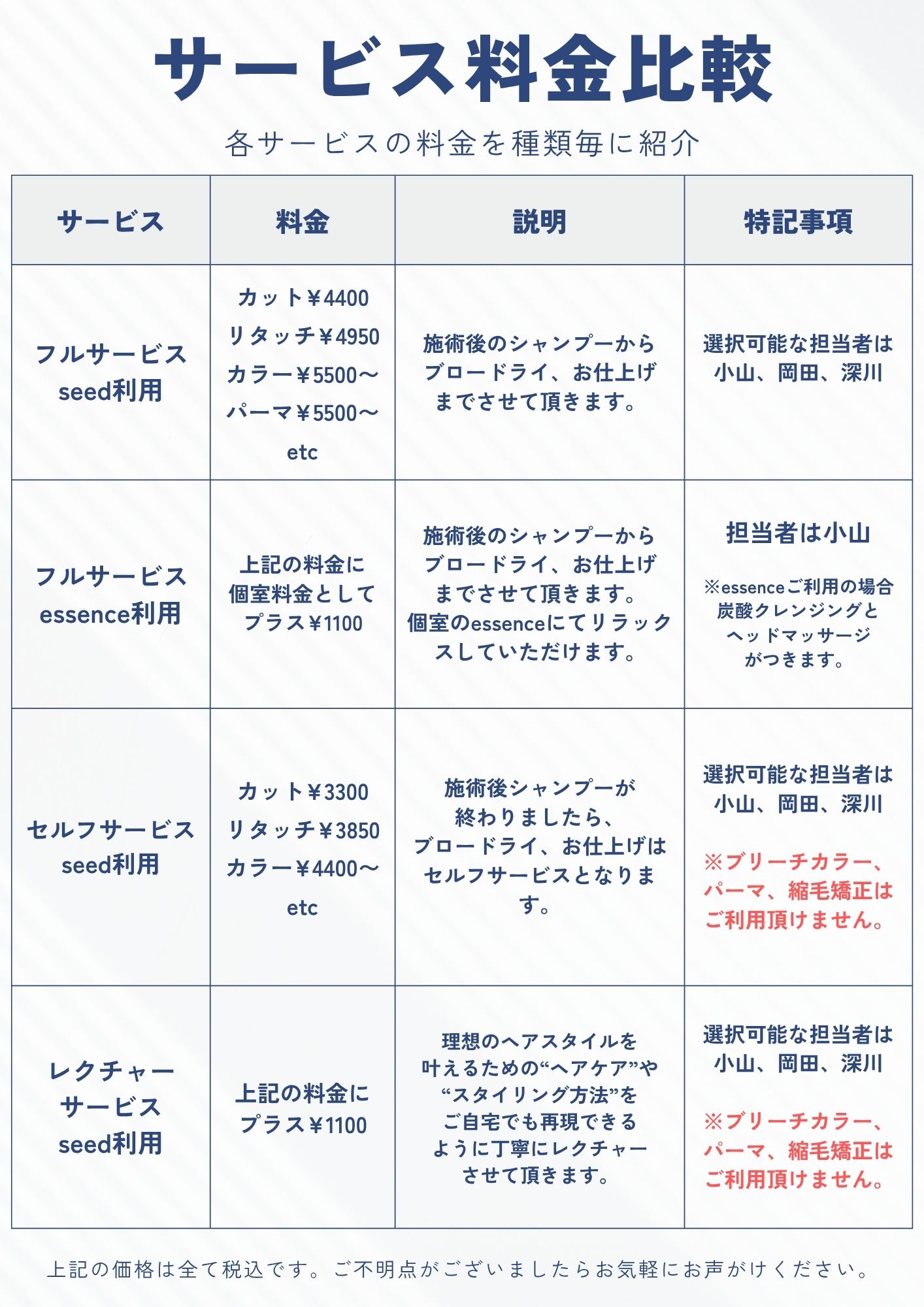 ※ブリーチカラーやパーマはセルフサービス対応不可となります。フルサービスのみの対応となります。